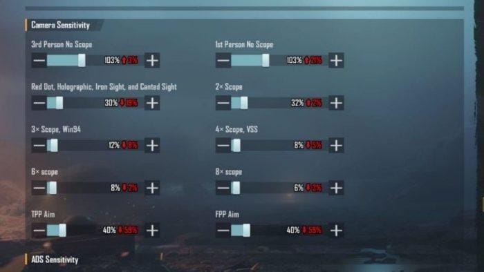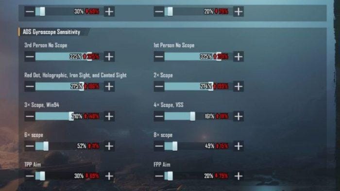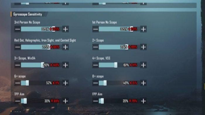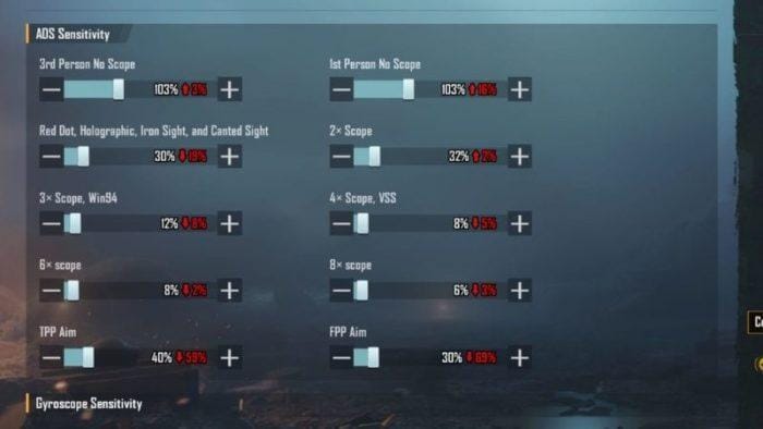 Ketika Gyroscope sedang aktif, sensitivitas kontrol kamera miring dapat disesuaikan selagi menembak.