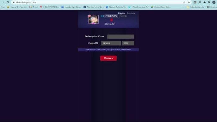 Ketika baru dibuka, situs idmobilelegends com langsung menampilkan tampilan yang mirip dengan halaman redeem code resmi dari Mobile Legends.