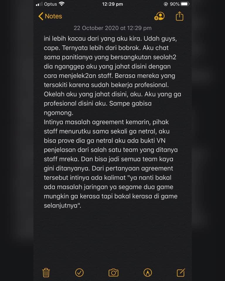 Dimulai dari postingan dirinya yang sebelumnya diberitakan, Indri menjelaskan beberapa poin yang diterima mengenai pelarangan dirinya bermain di grand final PBLL 2020.