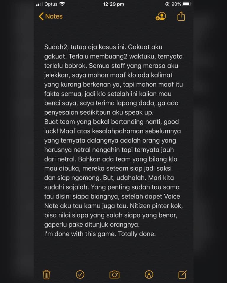 Selanjutnya dia juga mengatakan menutup kasus dengan adanya kronologi sepenuhnya dari yang dia alami.