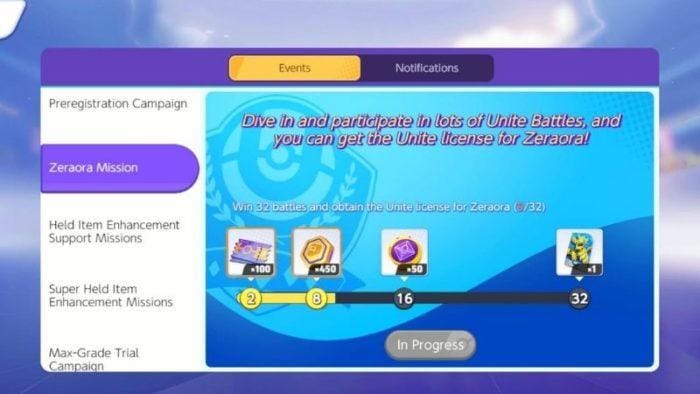 Cara berikutnya untuk mendapatkan Pokemon di Pokemon Unite secara gratis adalah menyelesaikan misi Zeraora. Misinya tidak terlalu sulit, kamu hanya harus mengumpulkan 32 kemenangan di Pokemon Unite.