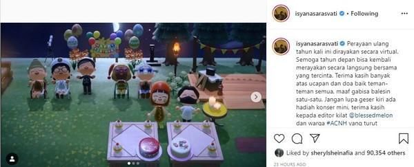 “Perayaan ulang tahun kali ini dirayakan secara virtual. Semoga tahun depan bisa kembali merayakan secara langsung bersama yang tercinta,” tulis Isyana di Instagram.